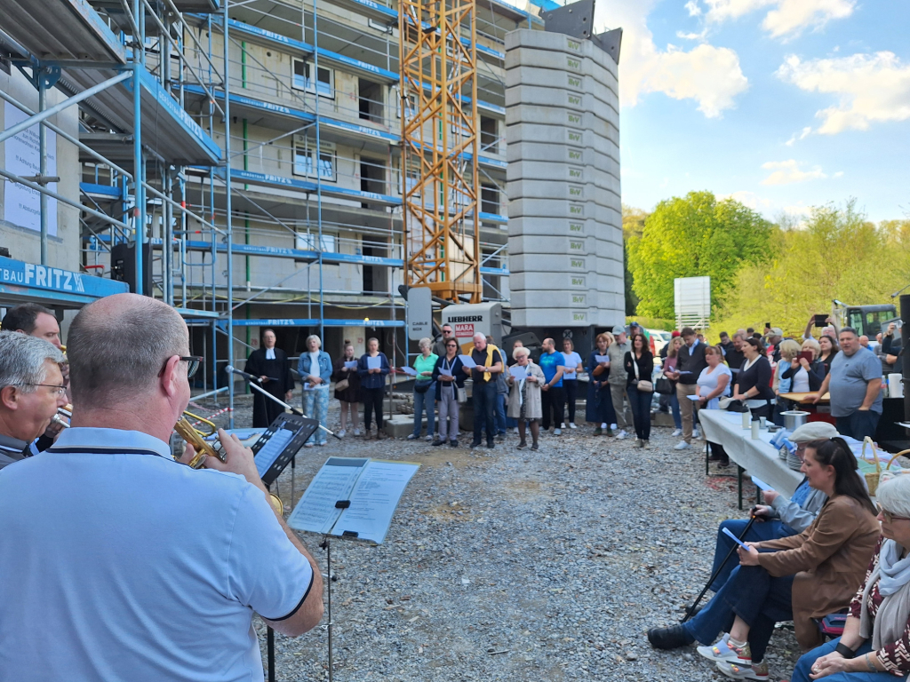 Am vergangenen Freitag konnte im Beisein vieler Gäste, darunter auch Bürgermeisterin Bodner, in Kleinsteinbach Richtfest für das Senioren Wohnen in Kleinsteinbach gefeiert werden. Pfarrer Mößner stellte das Bauwerk unter den Segen Gottes. Nach einjähriger Bauzeit ist der Rohbau für die insgesamt 29 Betreuten Wohnungen fertiggestellt. Ein mächtiges Bauwerk ist entstanden. Die Diakoniestation Remchingen wurde von den Verantwortlichen der Kirchengemeinde und der Bauträger gebeten, zukünftig die Betreuung und Pflege der Bewohnerinnen und Bewohner zu übernehmen. Die Wohnanlage in Kleinsteinbach soll für die Bewohner einen Lebensraum schaffen, der Kontakte und Beziehungen fördert, Begegnungen und gemeinsame Aktivitäten ermöglicht und so Spaß, Freude und Abwechslung bietet. Wir freuen uns über diese neue Aufgabe und sind dankbar für das Vertrauen, das uns entgegengebracht wird. Die Wohnungen werden teilweise von den Eigentümern selbst bezogen. Ein Großteil der Wohnungen wir aber von den Eigentümern vermietet werden. Voraussetzungen zum Bezug der Wohnungen ist das Alter von über 60 Jahren oder ein Pflegegrad. Neben dem Mietvertrag ist dann verpflichtend ein Betreuungsvertrag mit der Diakoniestation Remchingen abzuschließen.